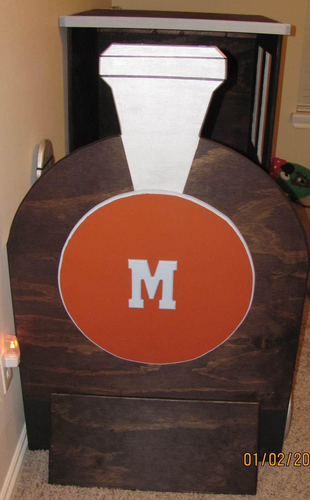 Where will he sleep now? Yes, this was our current conundrum. Should we go buy a bed, change the crib into a toddler bed…or act on the idea we had been playing around with? We decided on the latter…we were going to make him a train bed. (and by “we” I mean my husband) The measurements were then taken, the materials were purchased (from Home Depot), and the new bed began to take shape.