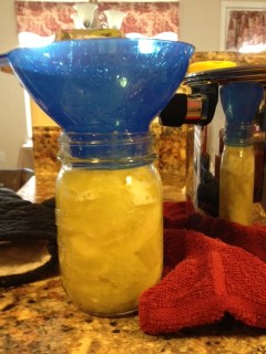 The fun was just getting started. Ladling the apples into the jars was the next pleasant, sticky part of this process. I had a mess; I hate being sticky.