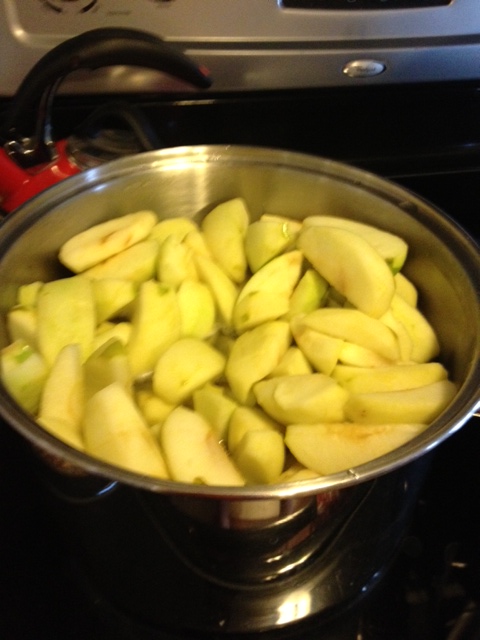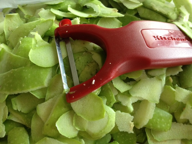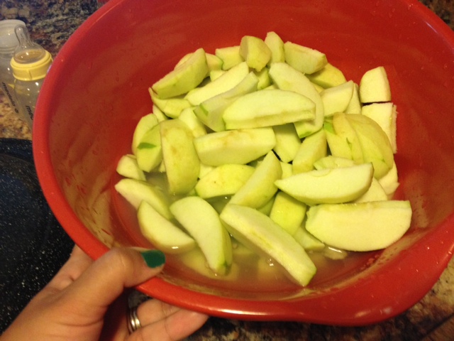I began the first step (according to the book) of washing, peeling, coring, and slicing. Do not be disillusioned into believing this is one step. The peeling and coring/slicing should each have their own steps. My fingers felt like eagle talons after I was done peeling all those apples. They will never be the same, I am sure.