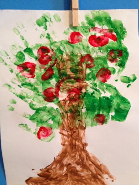 | We used his hand-prints to make the leaves. |