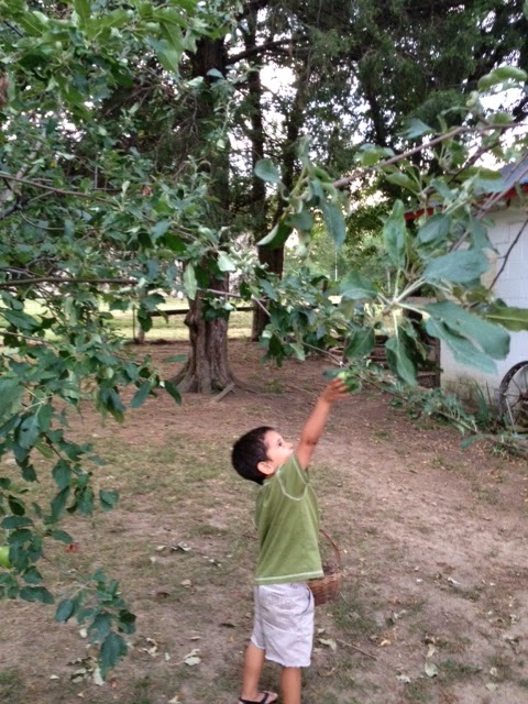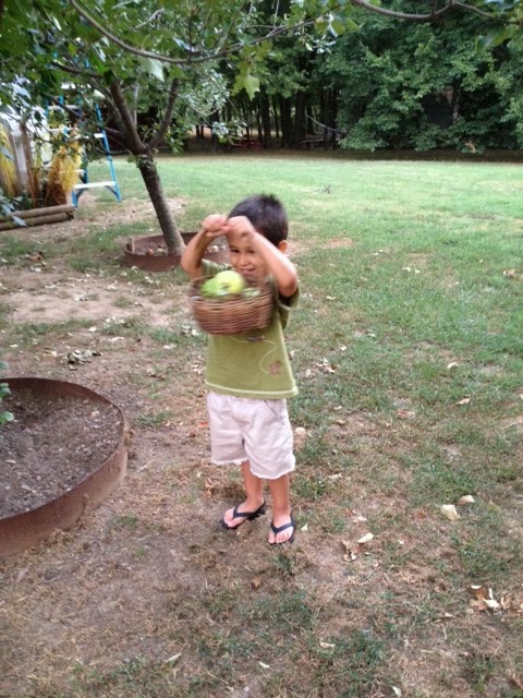 Confession – We may have tied the apples to the tree so Lil’ Man could “pick” them. If you remember my earlier statement…you know, the one about how my parents had already picked all the apples. We improvised.