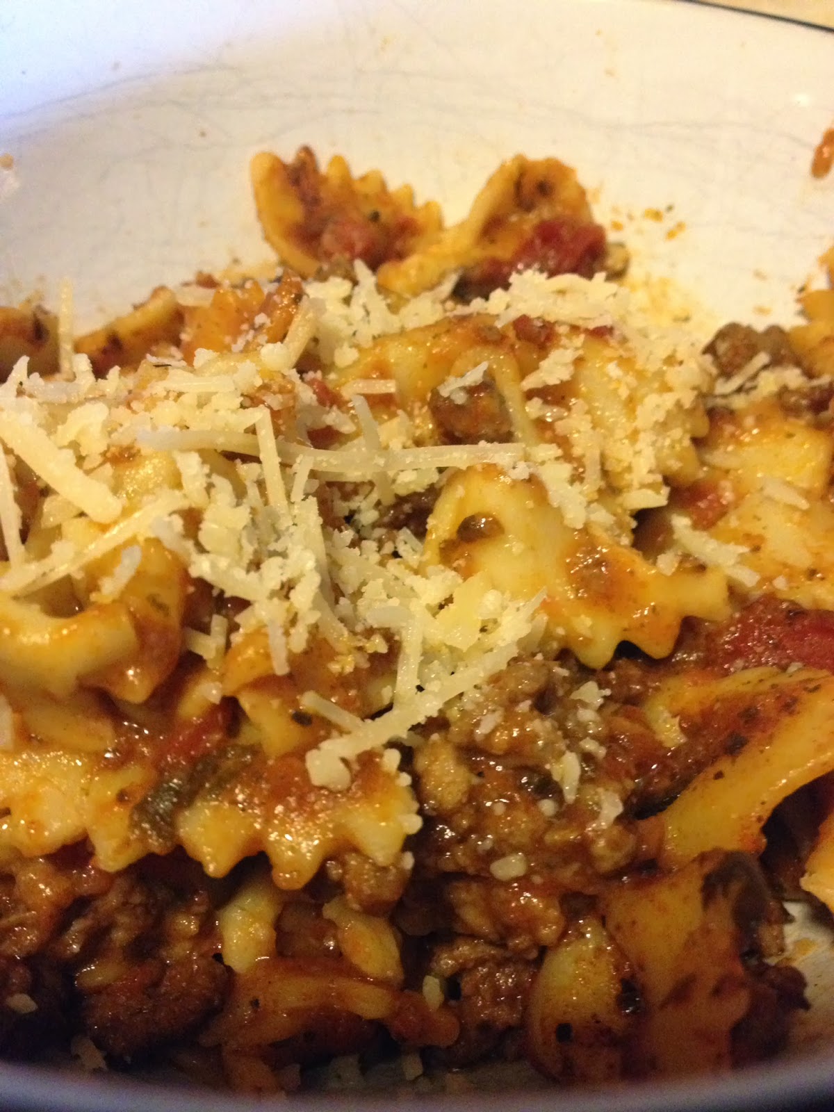 Being in the mood for some lasagna, but not quite wanting to go through all the trouble of making lasagna…I opted for an easy stove top version that satisfied my craving. This recipe is actually a lasagna soup recipe that my mother-in-law gave me, but I added more noodles to make it non-soupy.