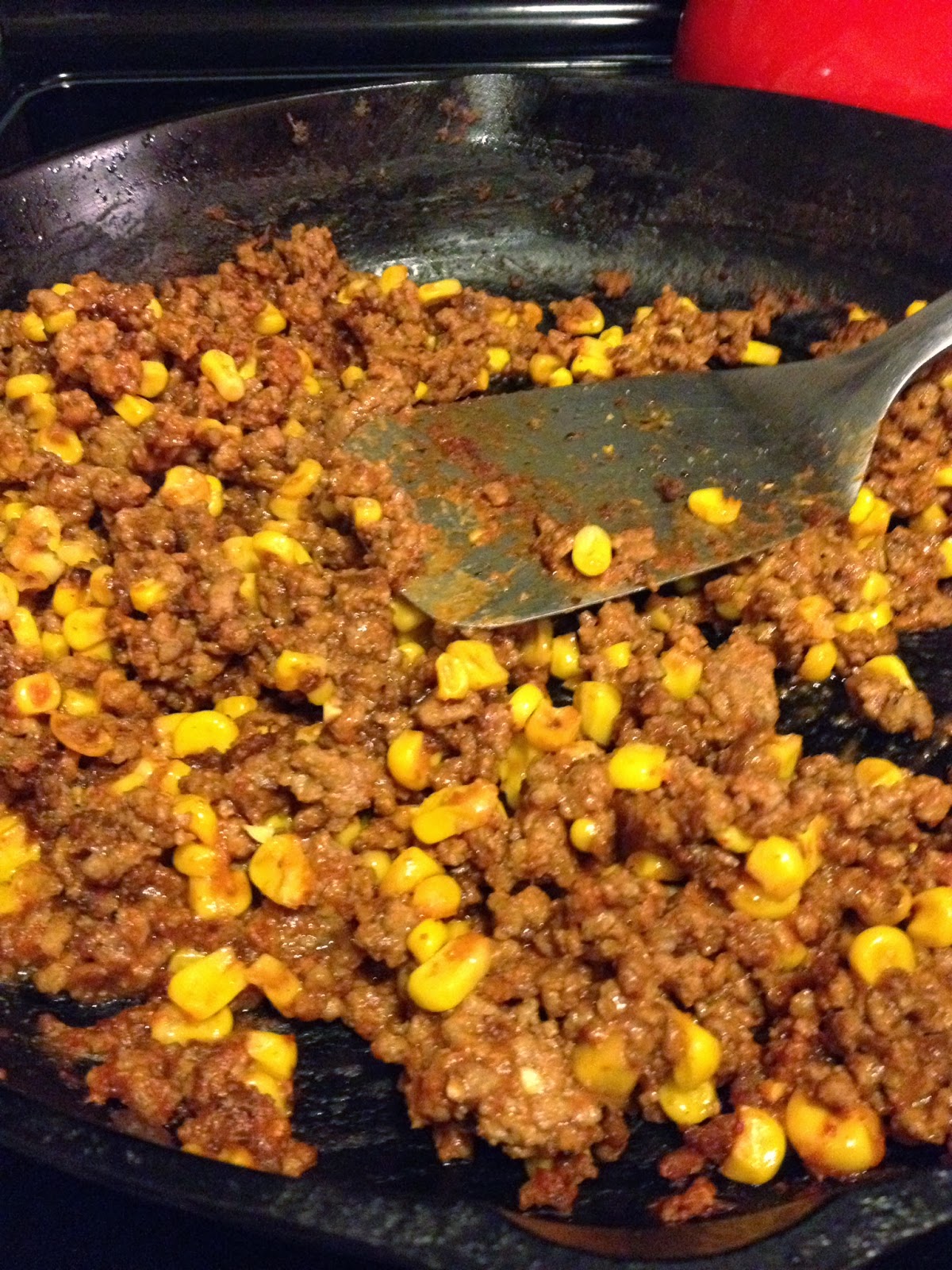 I love food that is cooked in a cast iron skillet…it just tastes so much better. Recently, while visiting them, my dad made a little concoction that I thought was quite good. I decided to replicate (with a tweak or two here and there) it at home and make some lettuce wraps with it.