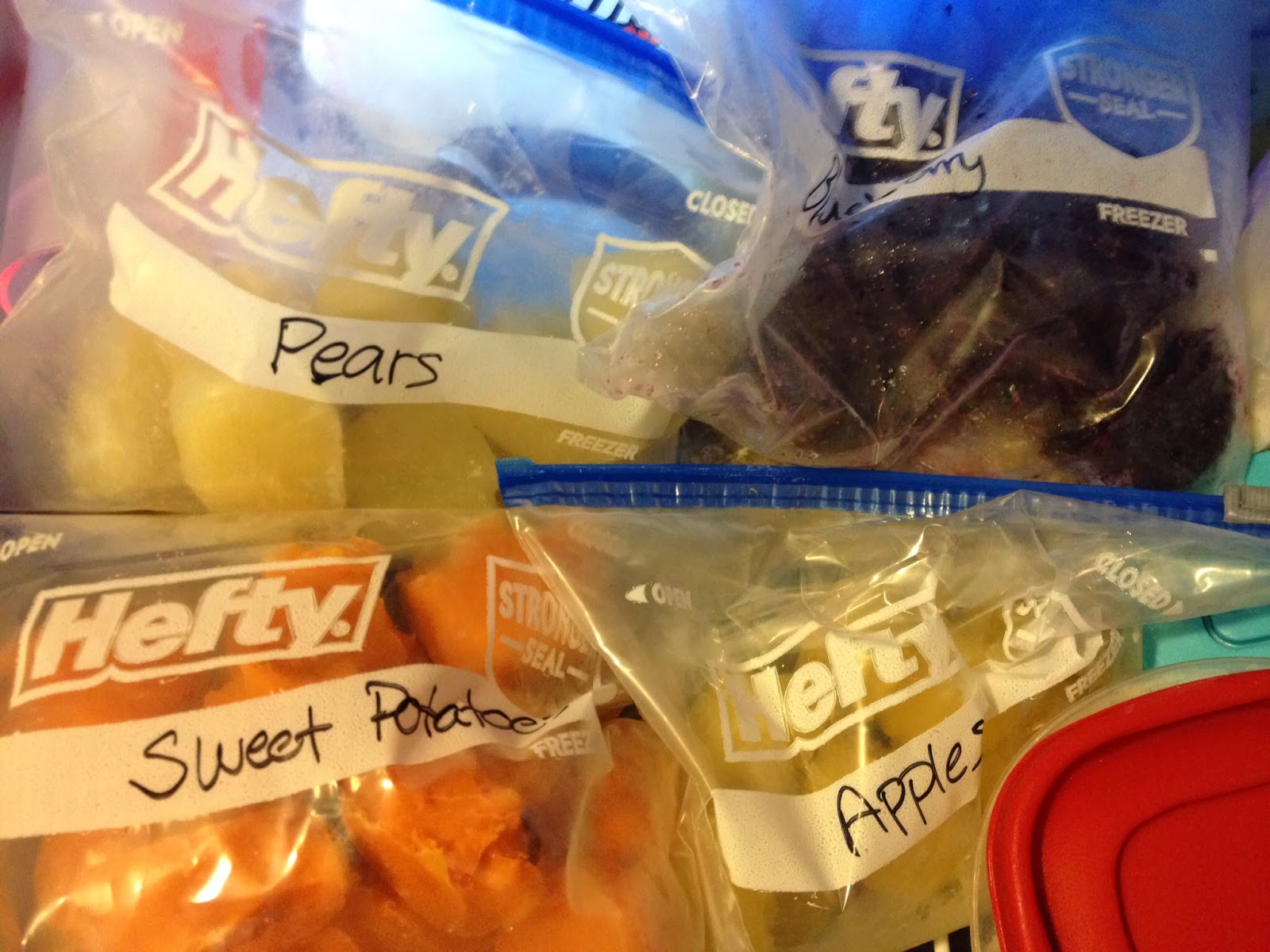 Steam the vegetable or fruit (with the steamer I already have), puree it (with the Ninja I already have), and freeze it; the exception was avocado and bananas, those I could just mash and serve. I felt relief from his words. I love our pediatrician. I was so excited that I didn’t have to worry about purchasing all the kits and items that I read I should buy to make homemade baby food, I could use what I had at home. I was excited to go out, buy some veggies, and make my own baby food.