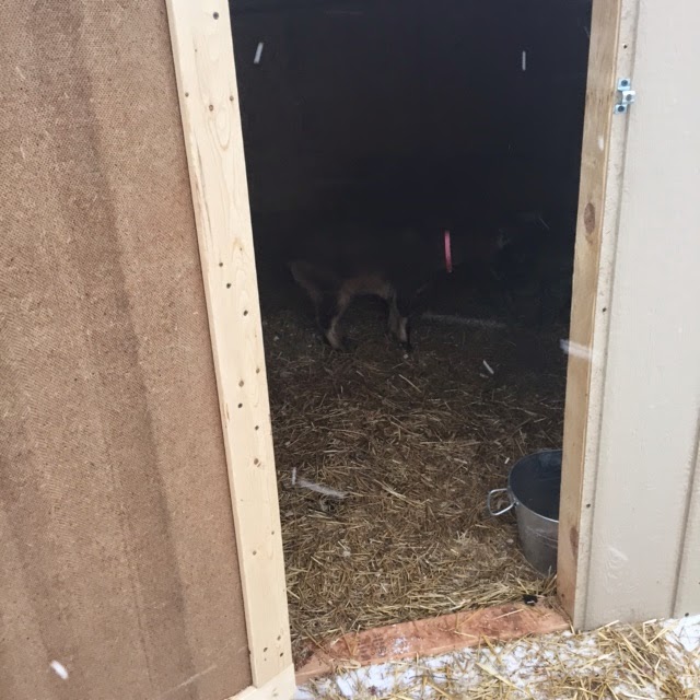 My goats? Well, they did not go outside. Period. I read somewhere that goats don’t really like to get wet. That, was no lie. My goats do not care for any form of precipitation. The whole day went by and they finally came out for about two minutes right before evening. Then, back into their warm and dry little abode they went.