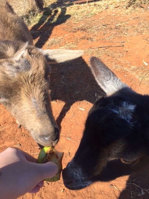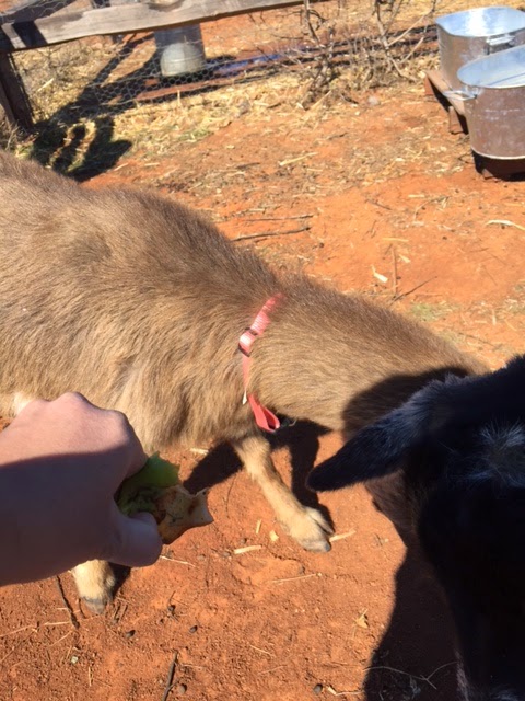 | Josie does not like to share with Shiloh. She sneezed at her (which also sprayed onto me) and would head butt her to keep her away from the apple. |