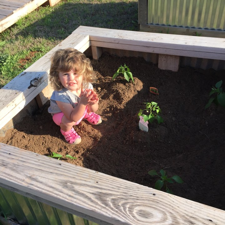 The kids were ready to get to the fun part. Miss Priss enjoyed digging in the dirt. Lil’ Man wanted to be in charge of taking the plants out of their pots and placing them into their new home.