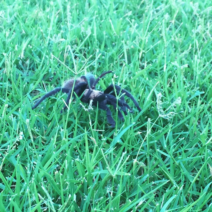 Big yucky spiders. This fellow was out for a brisk morning walk the other day. It is moments like this where I find myself wishing I had a BB gun.