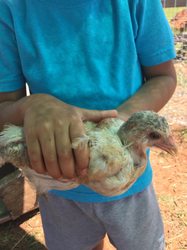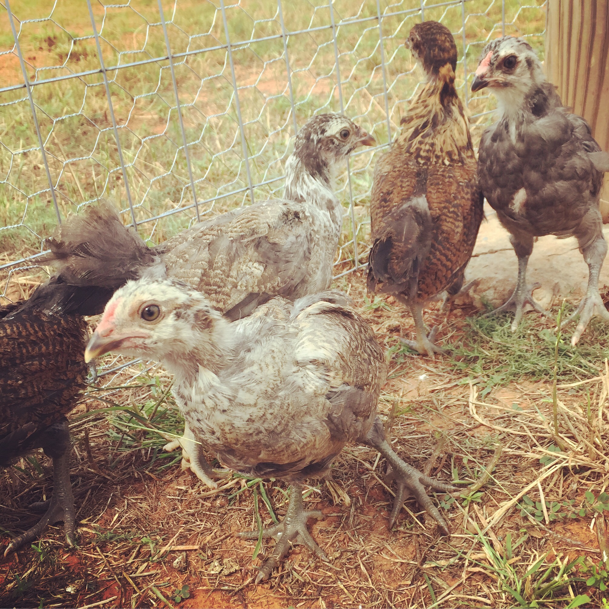 Of course, I wasn’t so excited about having them back the other day when I was having to chase one that escaped from their fenced in area (thanks to a certain little curly-haired girl of mine). It would not have been such a big deal if – I was not already trying to get my new group of chicks all situated in their new pen or if I was not trying to help Lil’ Man as my mean old rooster was trying to attack him or, even, if there was not a crew of roofers stopping their work on my next door neighbors house to watch, with amusement, as I chased Miss Josie all around. Bless.