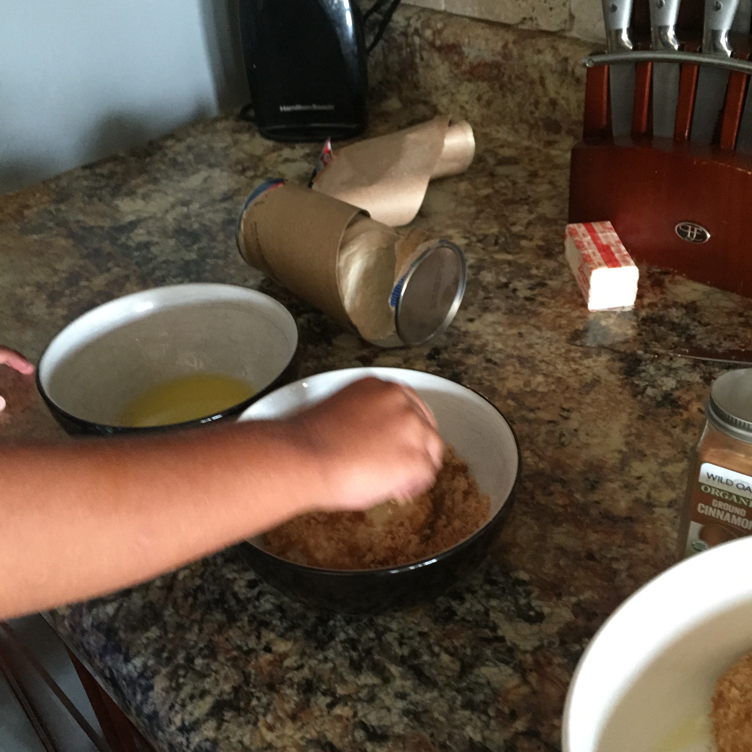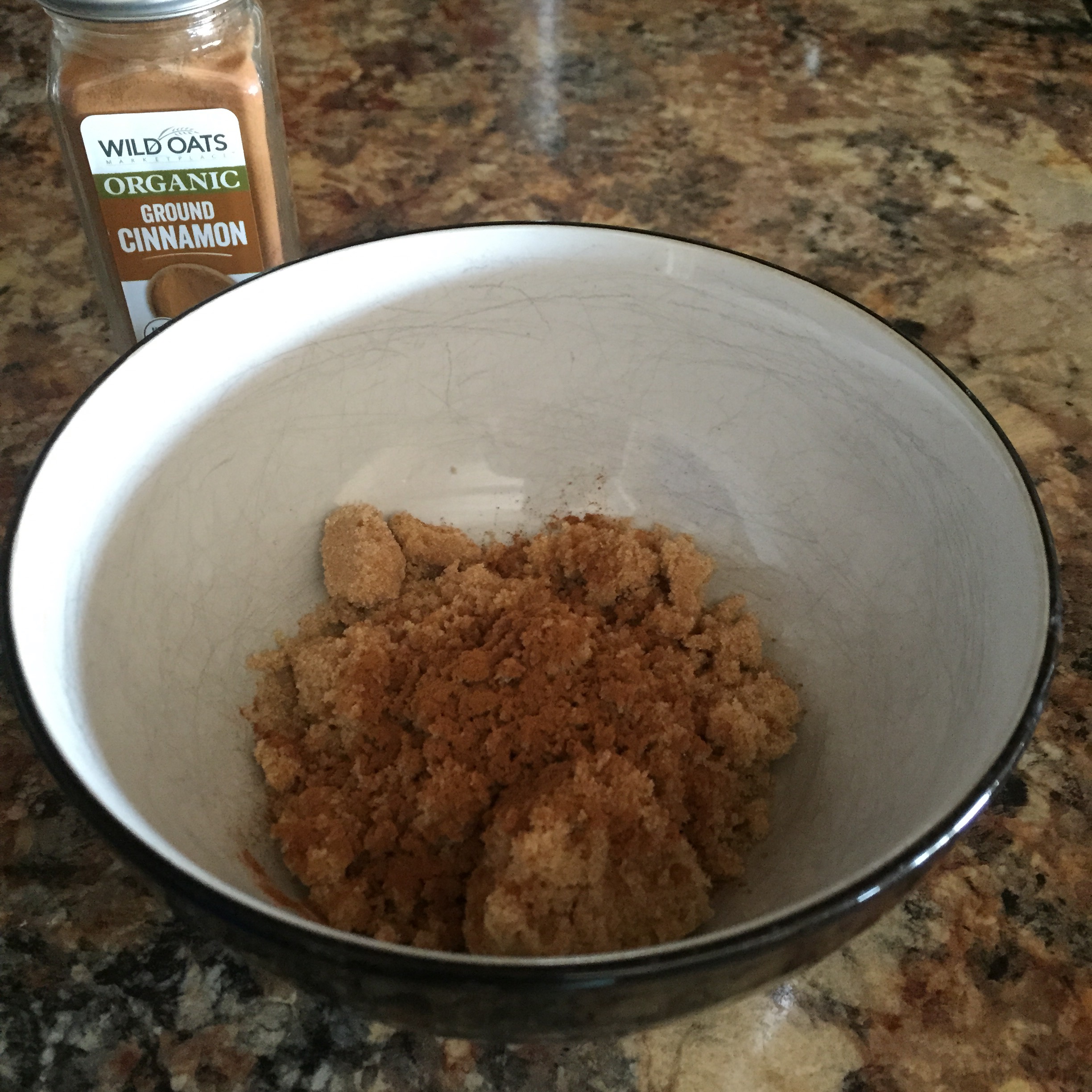2. In a separate bowl, mix brown sugar and cinnamon together.