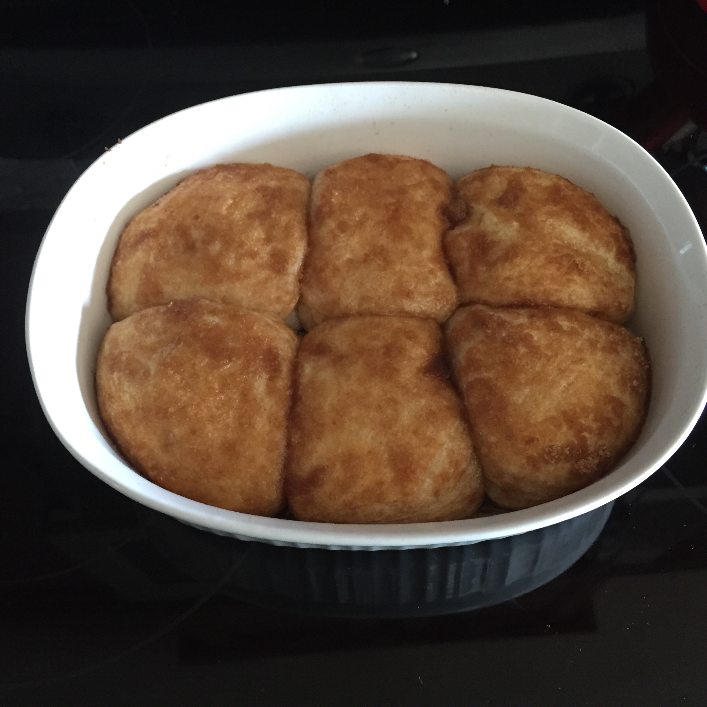 3. Dip biscuit dough in melted butter and then roll into brown sugar/cinnamon mix.