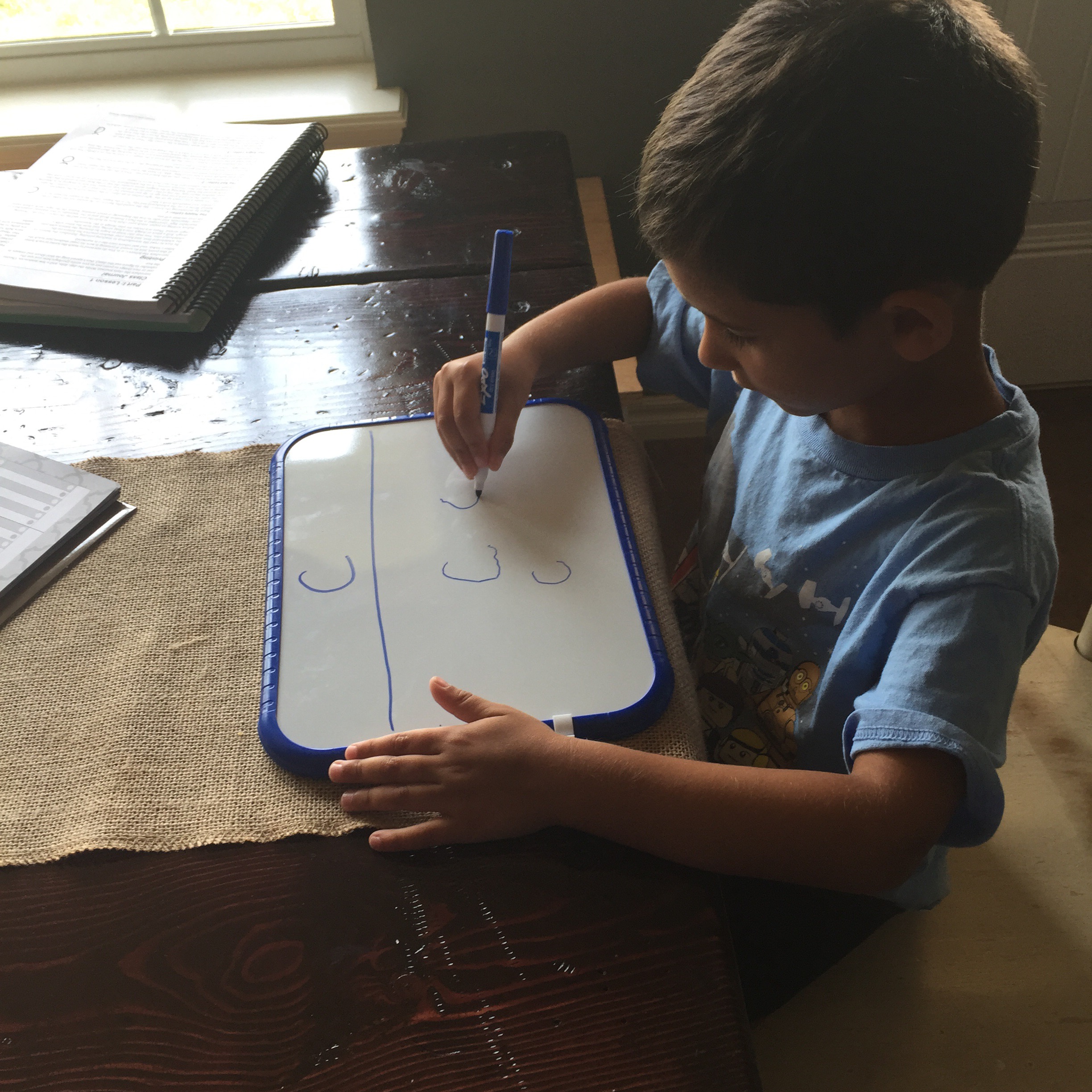 Working on letter formation during writing time.