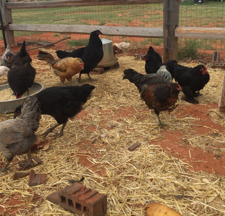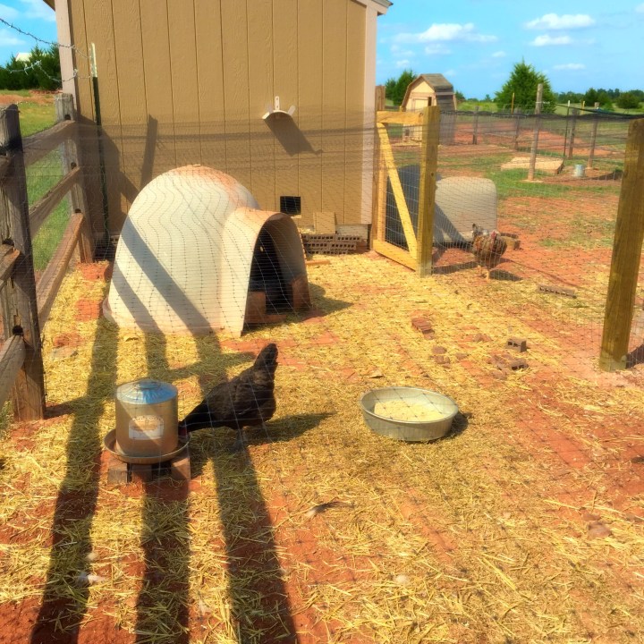 We have worked very hard on getting our goats and chickens in a new (and bigger) safe and secure fenced in area. The coyote, that seems to have plagued my life, provided us with much insight in this after taking off with my whole flock (8 hens). I think we now have them (my new flock of 14) in a safe and secure little run.