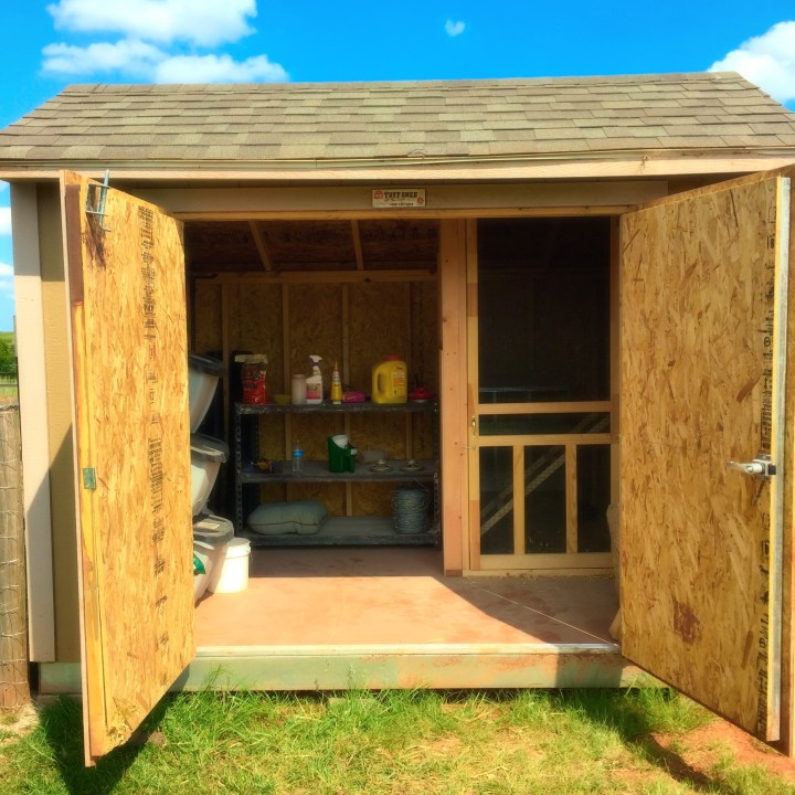 It is perfect. I am so happy with our new garden shed/chicken coop. In truth, it is much better than what we had before – It houses all the animal food and supplies (no more back and forth trips for me) and gives my chickens a nice big clean space to sleep and lay eggs.