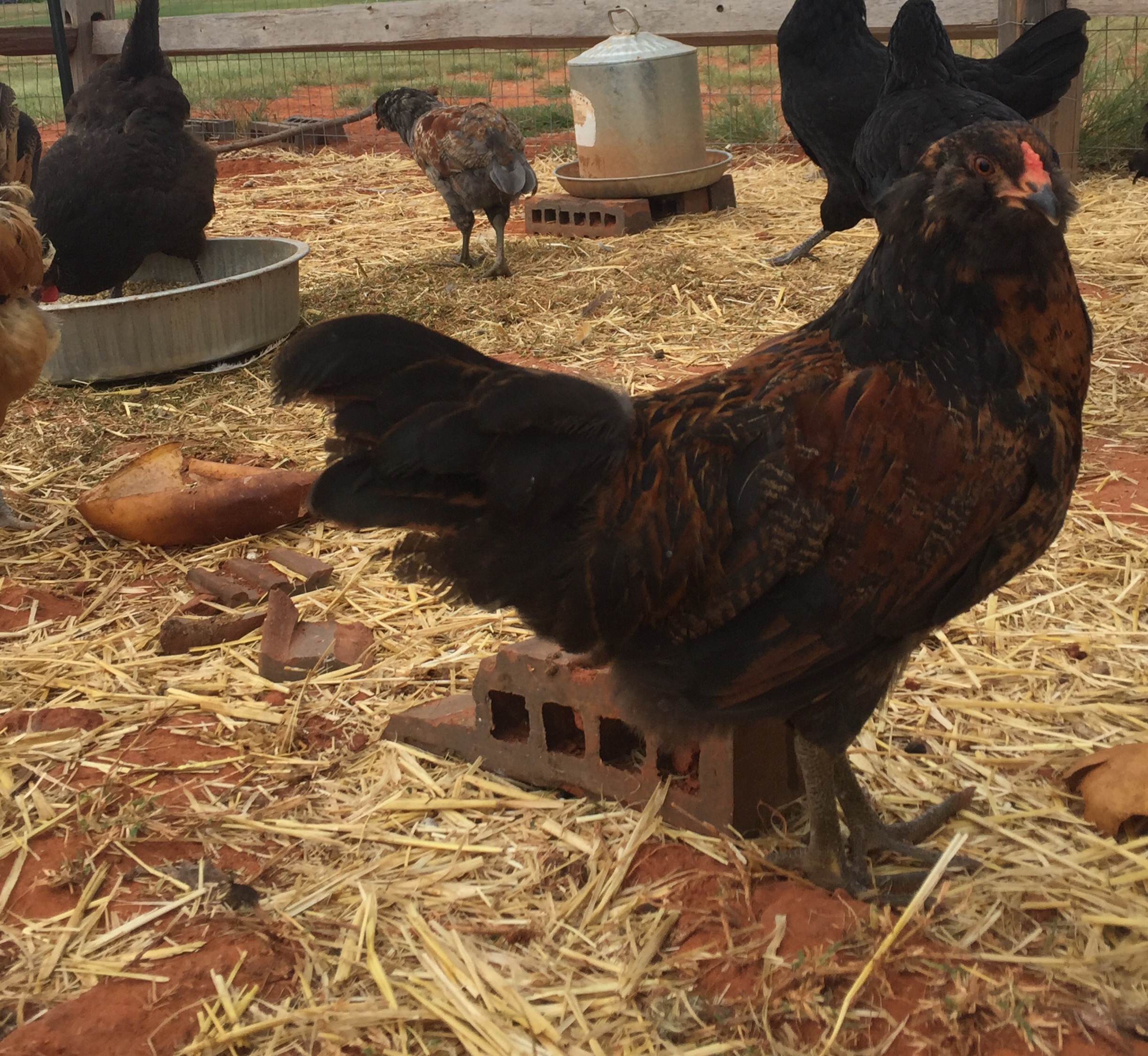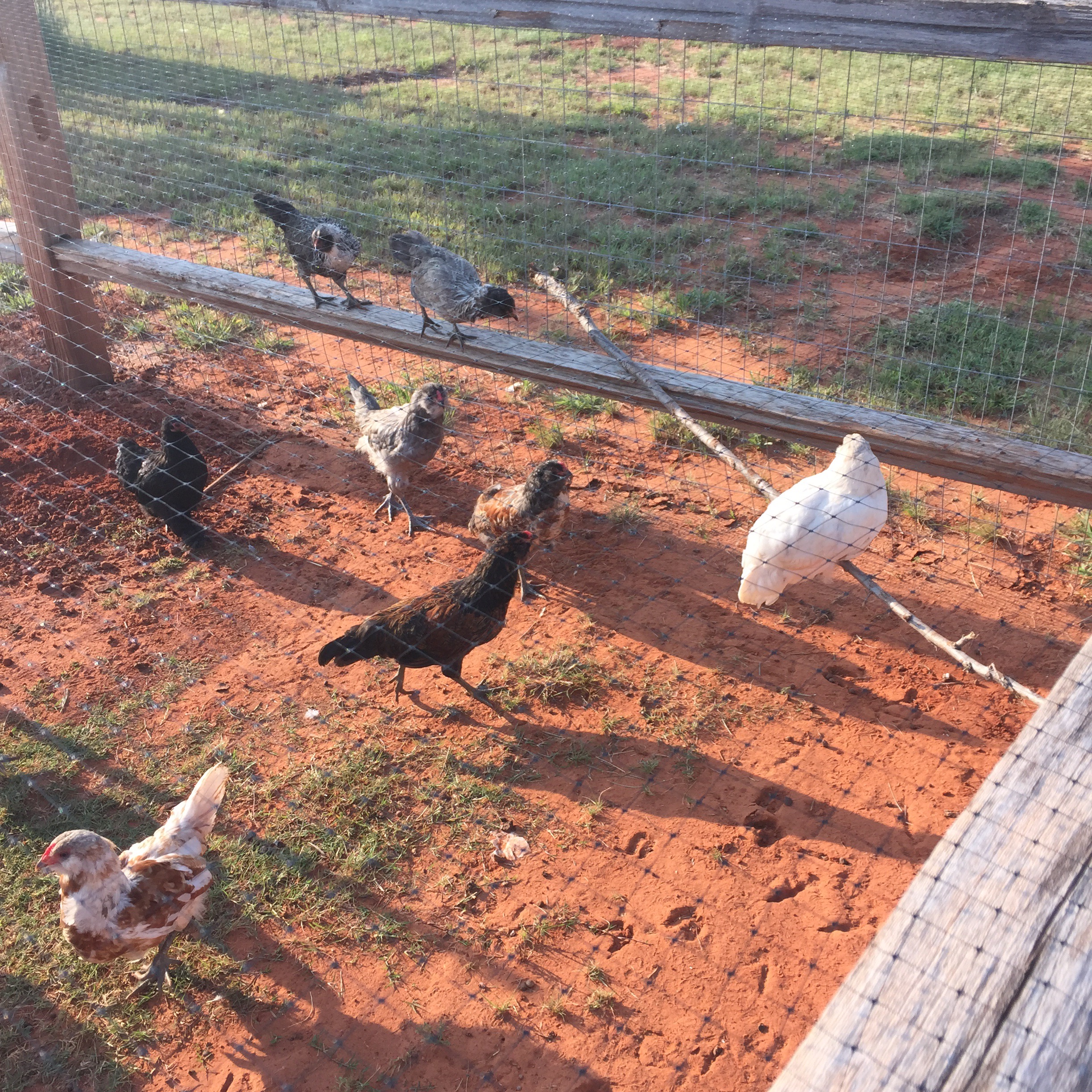 We have worked very hard on getting our goats and chickens in a new (and bigger) safe and secure fenced in area. The coyote, that seems to have plagued my life, provided us with much insight in this after taking off with my whole flock (8 hens). I think we now have them (my new flock of 14) in a safe and secure little run.