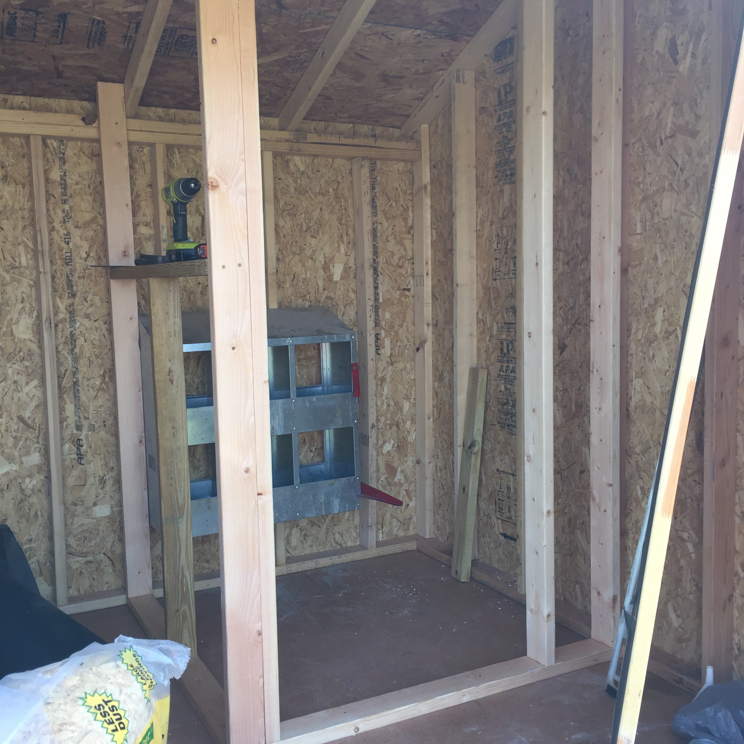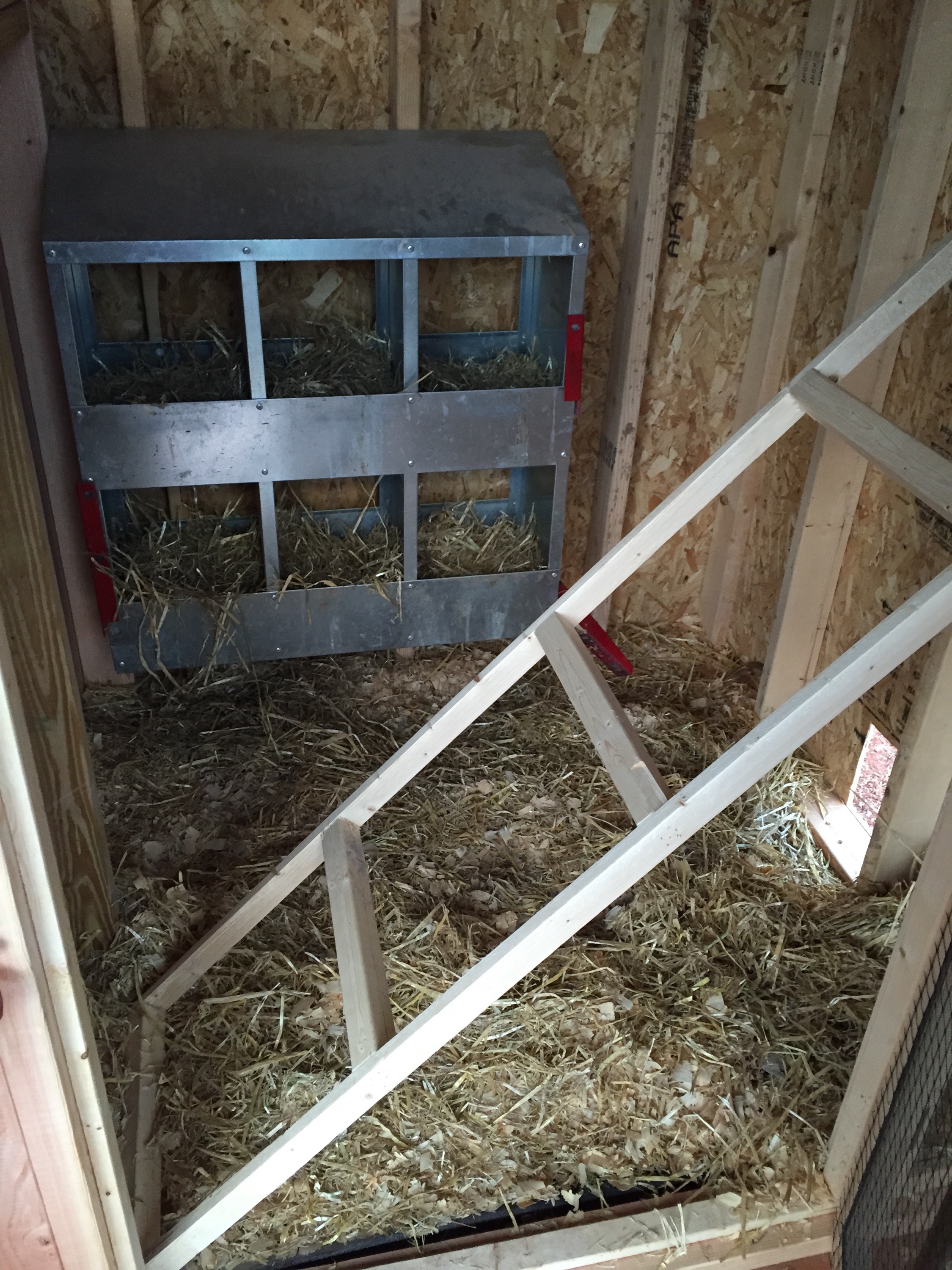 Pine shavings, straw and a roost completed the new space.