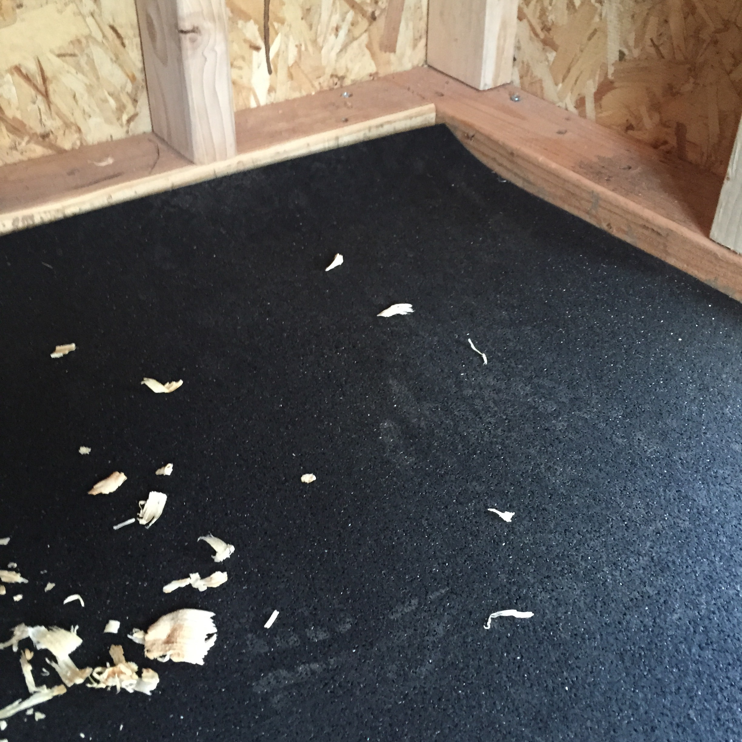 We laid a piece of rubber flooring down for easier cleaning.