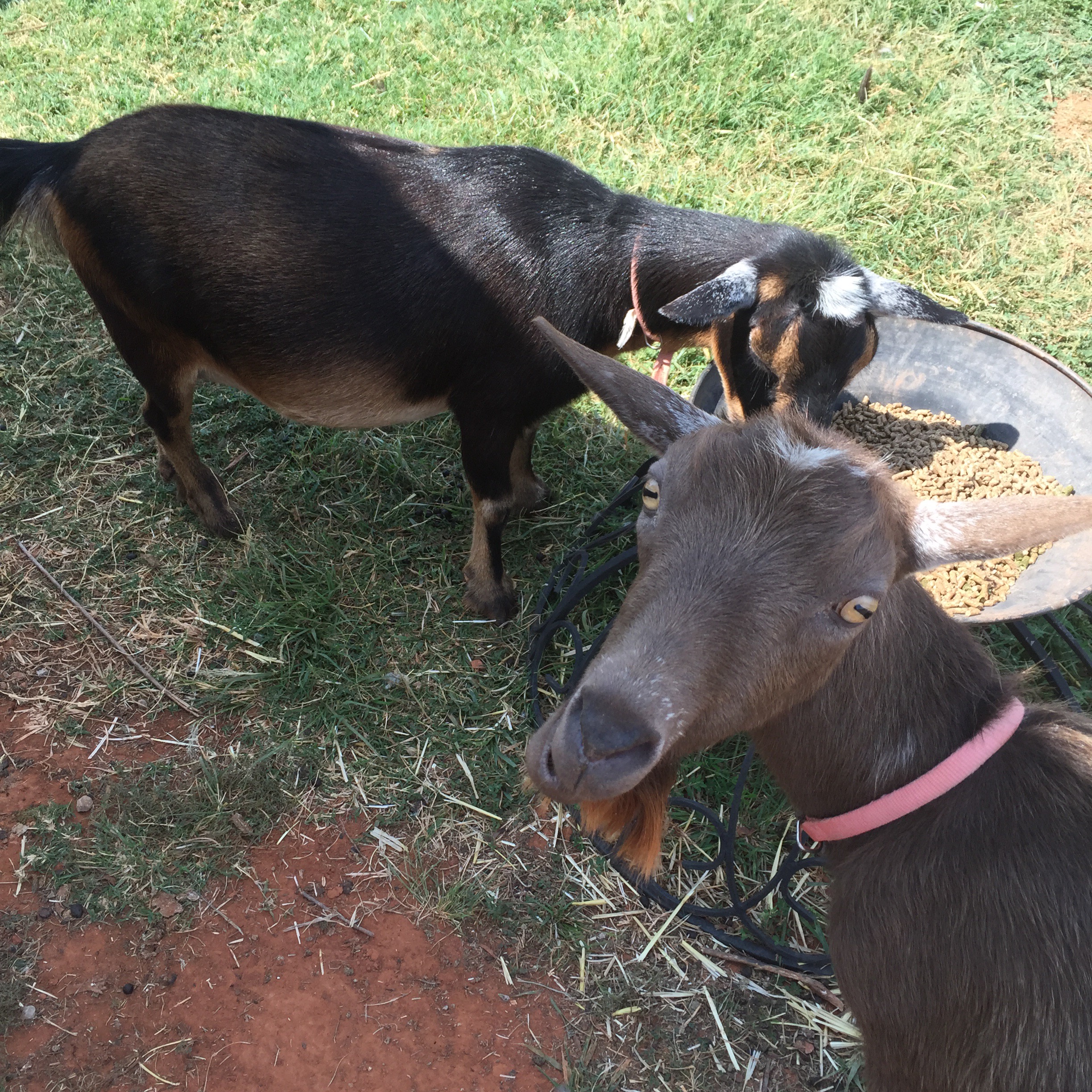 I’m guessing sometime in mid-October we should have a couple of little goatlings running around here. Sooooo, this should be interesting. I’ve already began my search online – “how to prepare for birthing a goat”, “what to do when your goat is having babies” and “can goats give birth without me having to be there to help”.