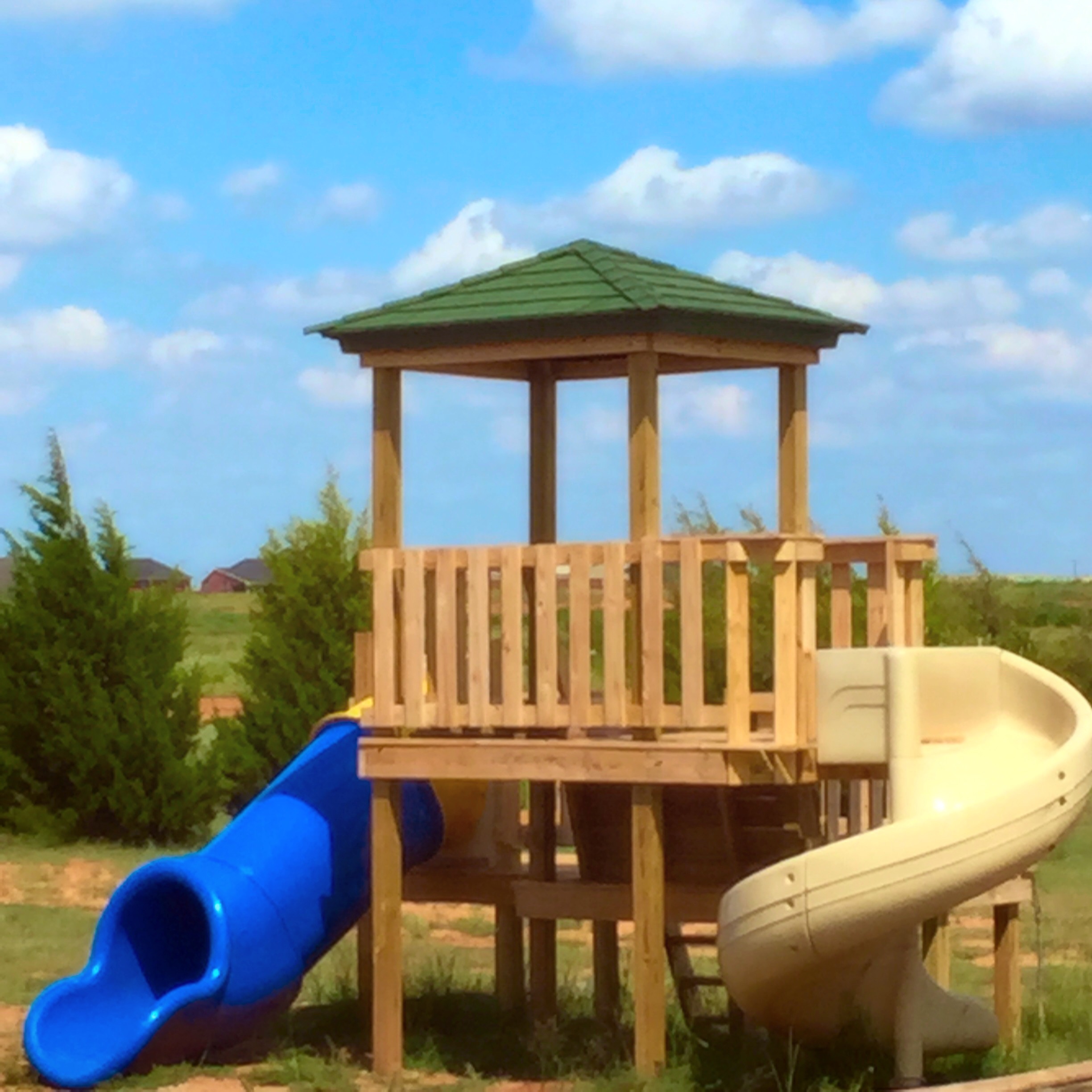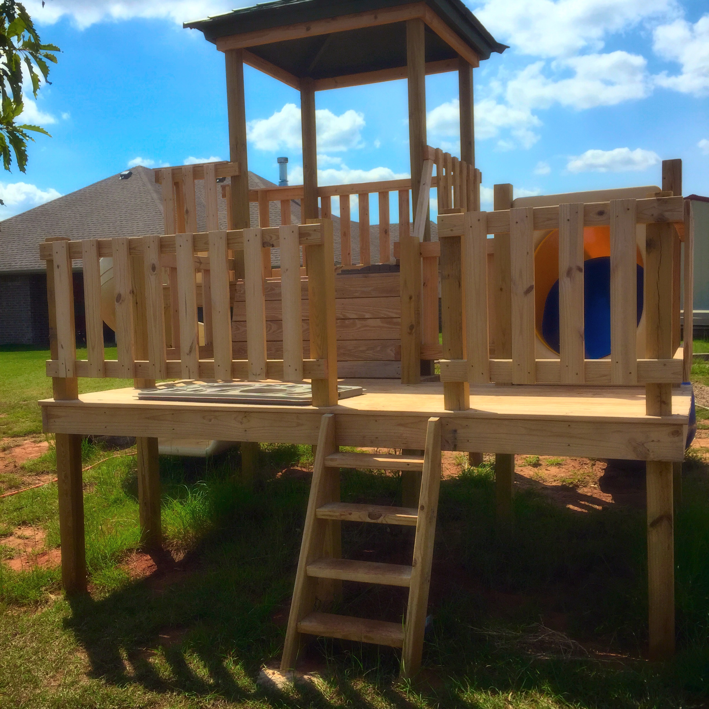The kids, well they loved their old playground. It was a gift given to us from dear friends and it was definitely well loved. It was hard to see it destroyed by a sudden tornadic storm. But, in the disappointment, we also found something to be grateful for – good insurance that provided replacement cost. Now the little ones have a new (hand built) playground/fort to read on, play on and experience all kinds of adventures on.