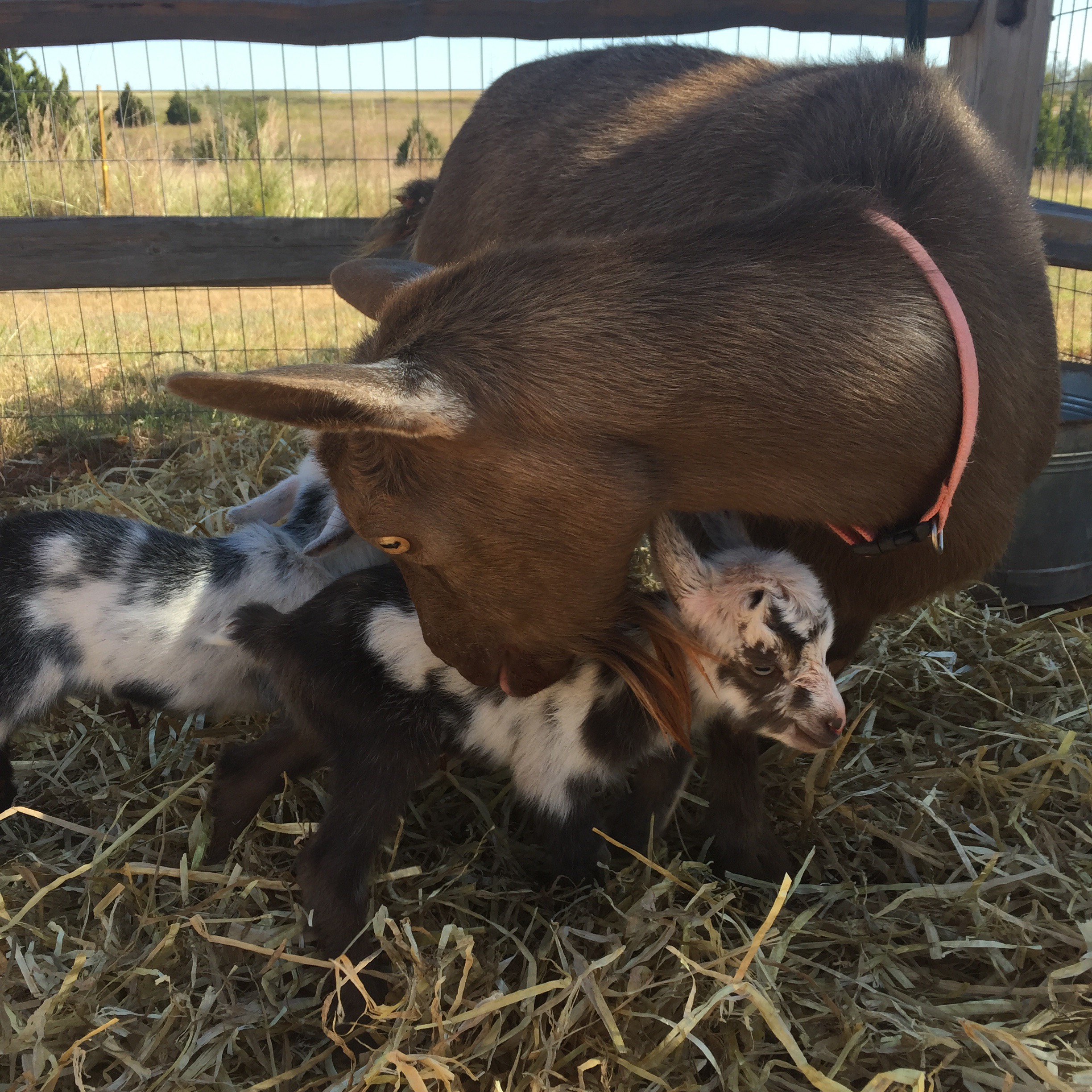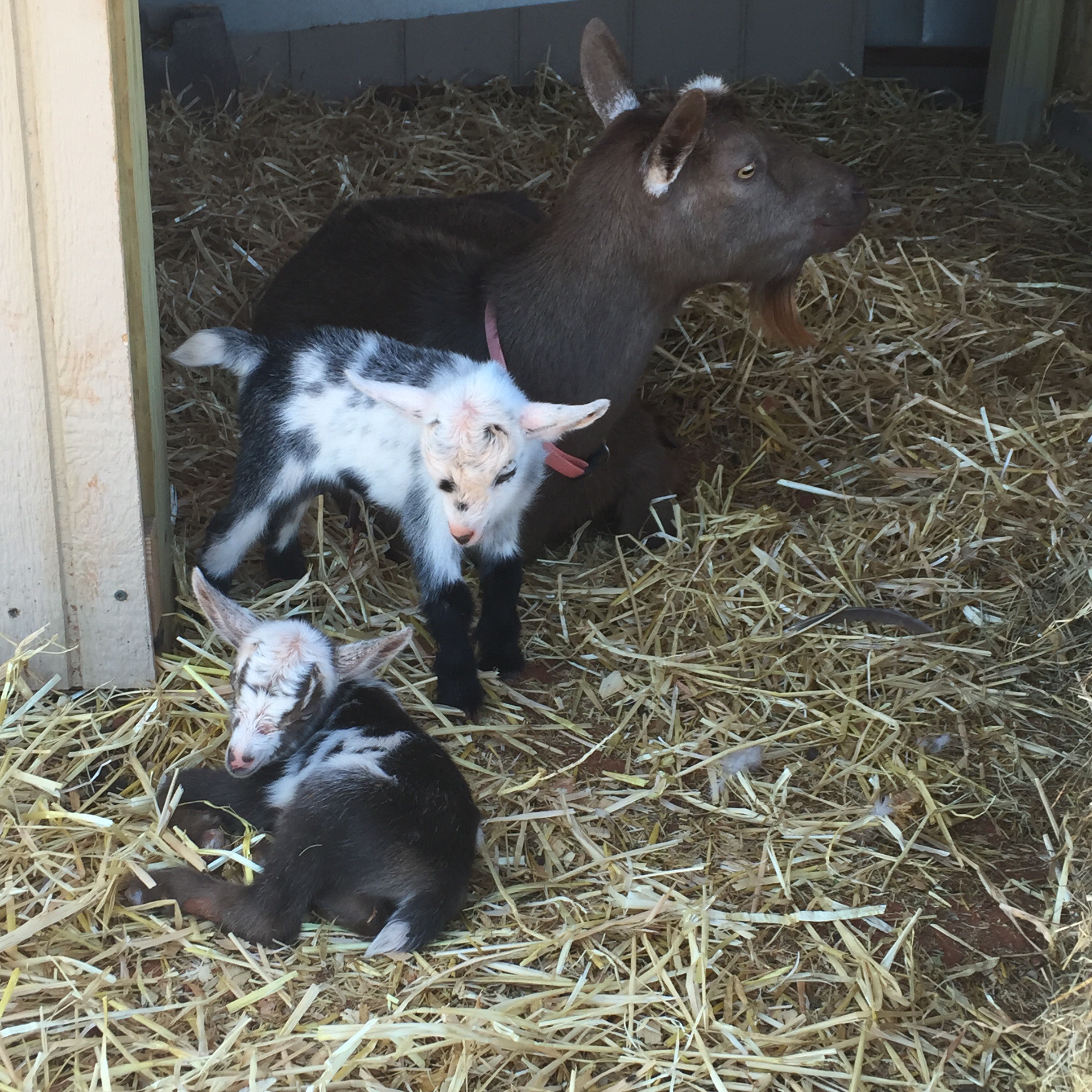 Well, I will skip the details for the next hour. BUT, it was completely fascinating to observe as I stayed by her and threw straw on the ground around her…trying to keep it clean as possible. I also thought it would be nice if I spoke encouraging words to her during all this, if she understood at all, I suppose I will never know; she very well may have wanted to punch me in the face with her little goat hoof during that time. The whole family (minus Lil’ Mister) was out there to observe the birth. It was awesome. I always try to point out to the kids the things that are in our day to day life that reveal the glory of God, well today, we had so very much to discuss.