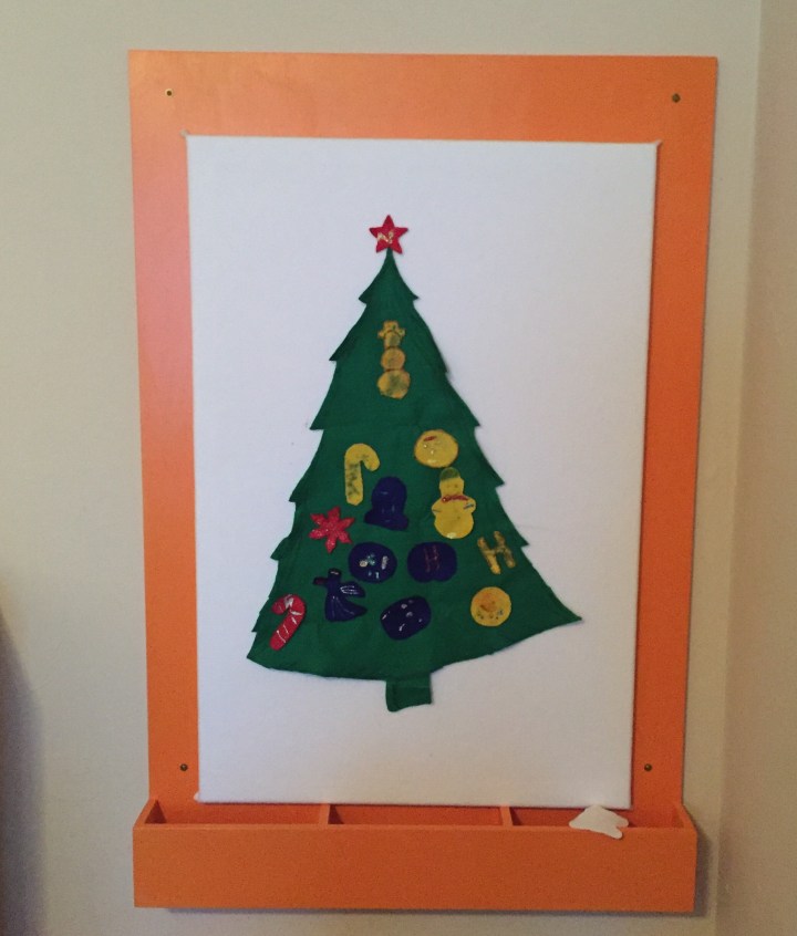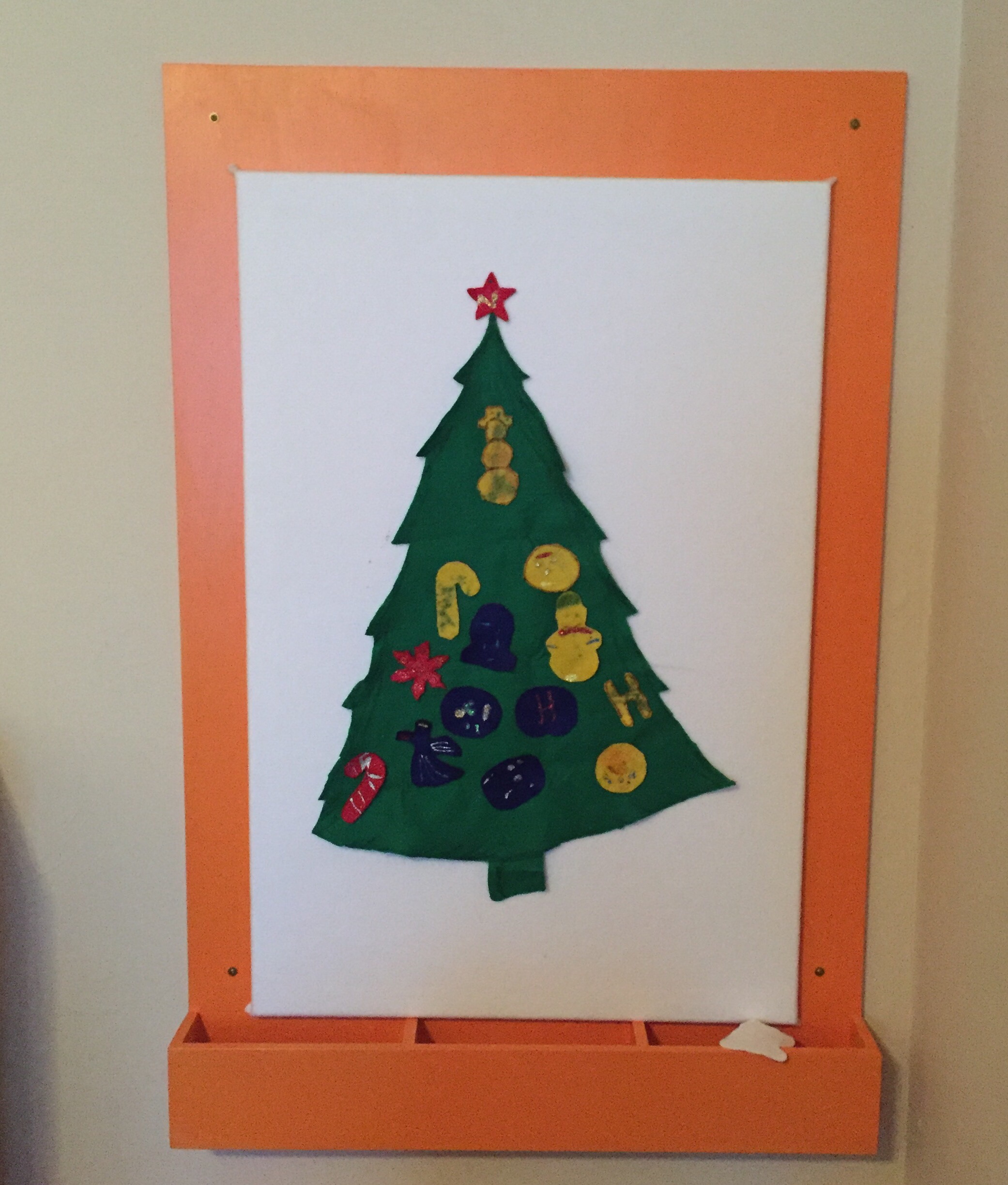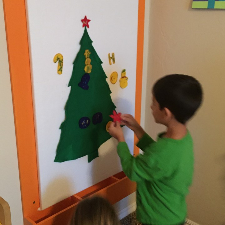 * Hang Christmas tree on the wall (or felt board if you have one).